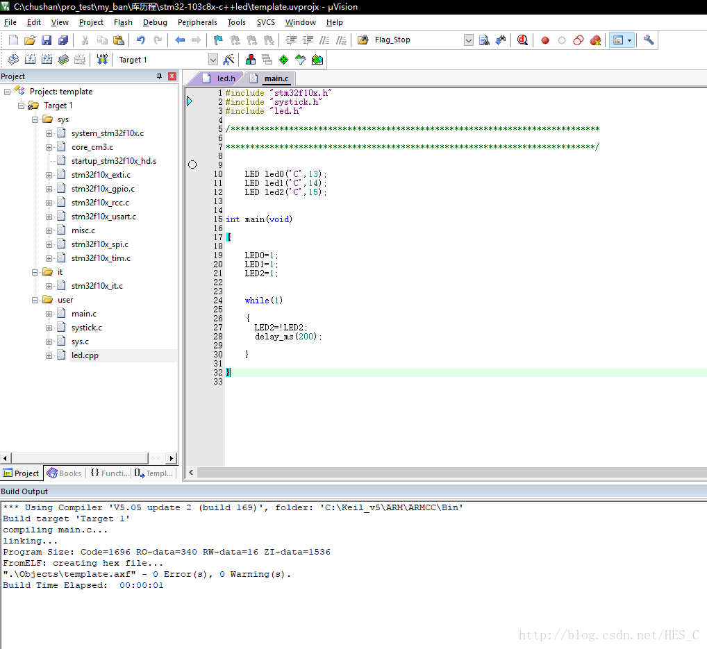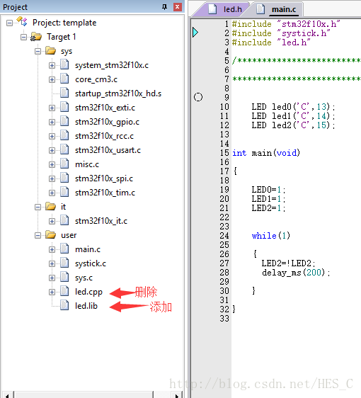 删除led.cpp,添加led.lib,编译一下