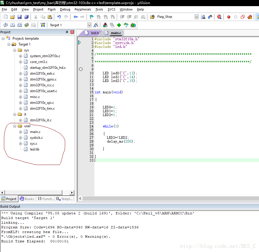 编译一下,下面看到已经生成led.lib文件了