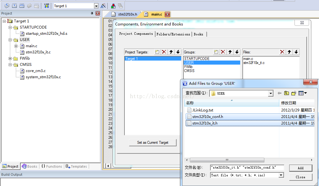 3.个人习惯:把stm32f10x_conf.h和stm32f10x_it.h加到USER文件夹方便修改;