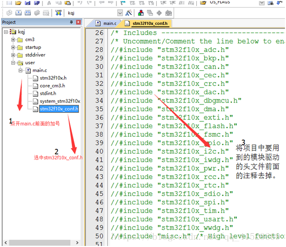 条件编译宏在stm32f10x.h文件中的73和99行中可以找到。