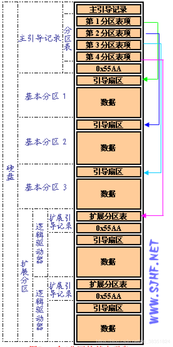 Windows操作系统为了便于用户对磁盘的管理。加入了磁盘分区的概念,即将一块磁盘逻辑划分为几块,它会把磁盘的分区信息记录到硬盘分区表中。
