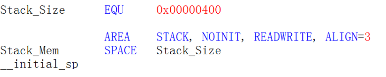 标号__initial_sp 紧挨着 SPACE 语句放置,表示栈的结束地址,即栈顶地址,栈是由高向低生长的。