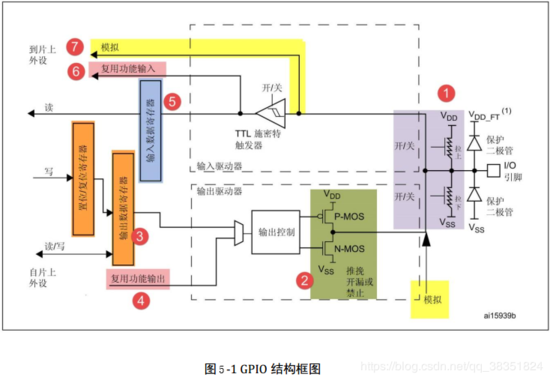 下面我们按图中的编号对 GPIO 端口的结构部件进行说明。