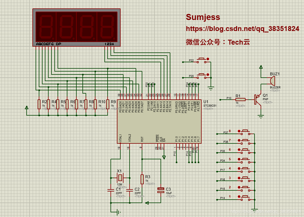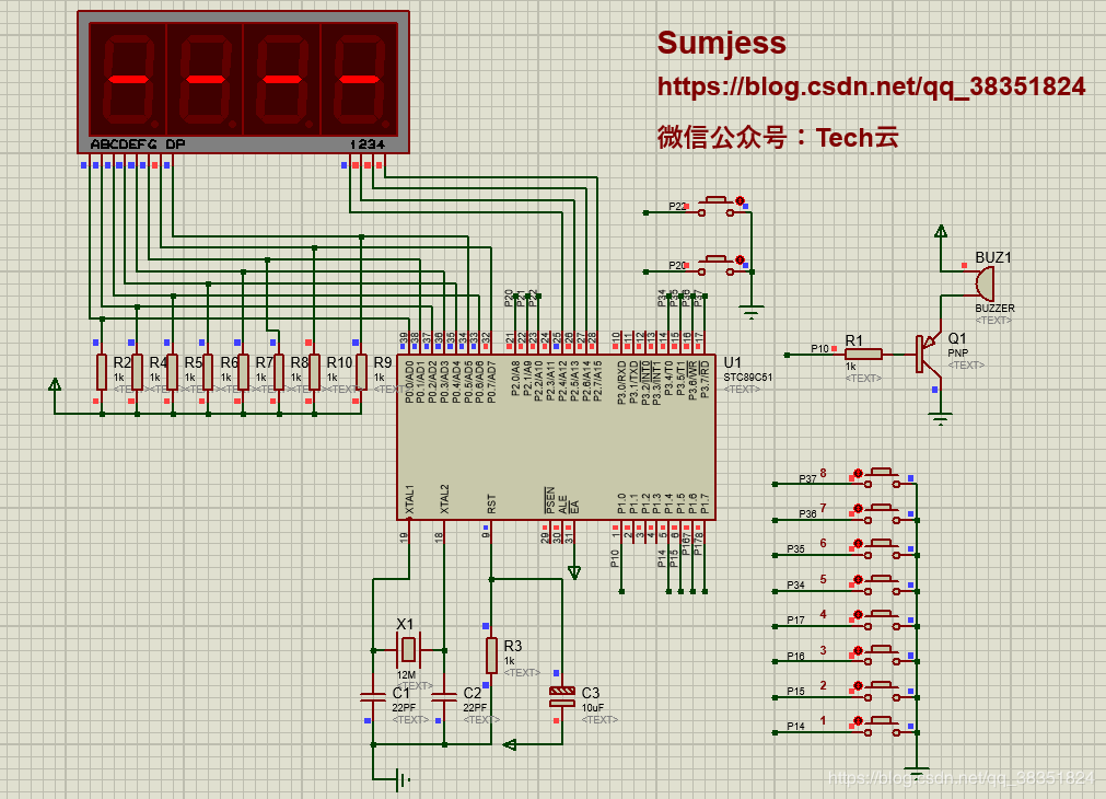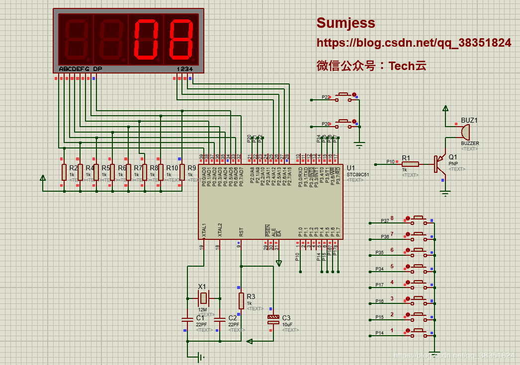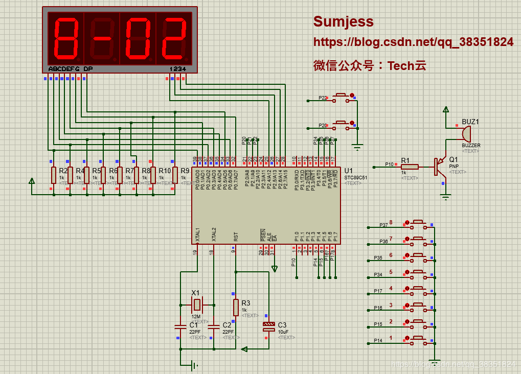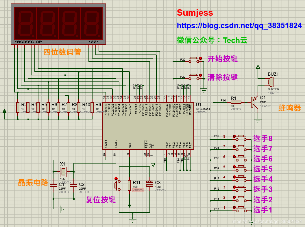 3、采用数码管显示抢答10秒倒计时,若有抢答直接结束,显示结果。
