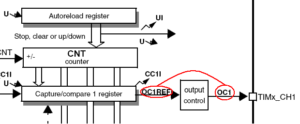 CNT里的值不断++,一旦加到与CCRX寄存器值相等,那么就产生相应的动作。这点和AVR单片机很类似。既然这样,我们要产生需要的PWM信号,就需要设定PWM的频率和PWM的占空比。
