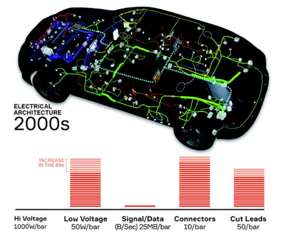 随着车载娱乐系统、用电器的发展和越发严苛的环保标准,从1960年代开始,车载电子架构发展迅速,特别是进入千禧年后,以CAN协议为首的电子架构标准、数据和通讯协议让汽车的电子架构不止于满足于服务基本驾驶功能,而朝着智能化和互联化的方向迈出了一大步。
