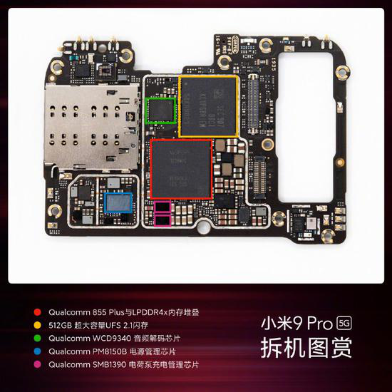 小米9 Pro 5G为了应对5G的需求,主板采用了双层堆叠设计,加入全新的5G基带和射频芯片。