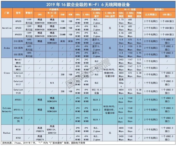 已发布的Wi-Fi 6产品及其芯片供应商