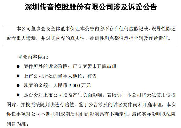 1.华为因一张壁纸起诉传音:传音控股10月7日晚发布公告,披露与华为的诉讼案细节。传音公司于9月29日收到深圳中院送达诉状,华为公司起诉传音公司及子公司侵犯其一张壁纸的著作权。目前该案件已立案暂未开庭审理,侵权赔偿主张为2000万元。