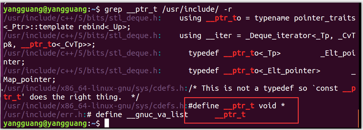这个__ptr_t是va_list通过层层define之后最后的原型,可以看到,GNU中,va_list确实是定义为void *类型,但是上面的分析也可以看出,GNU中void *指针默认操作是char *.但是我们自己实现的printf函数中,还是采用char *这样的通用操作。
