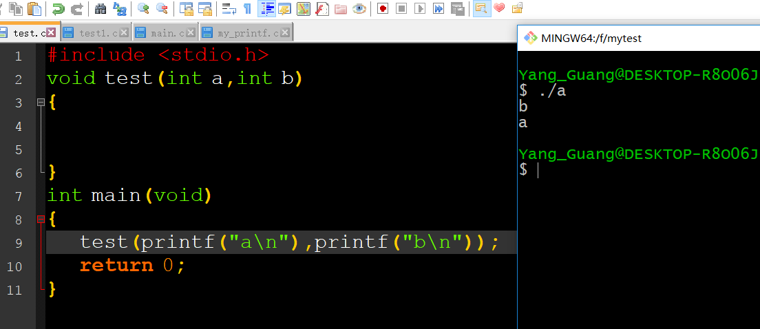 参数传递的时候,在栈生长方向是高地址往地址这种方式下。先入栈的,存放在高地址,通过上面的打印可以看出,最右边的参数明显先入栈,所以才会先打印b,再打印a,如果C语言基础比较好的,应该是知道原因的。为什么C语言选择参数从右往左入栈?先说结论,要是C语言不支持可变参数,那么从左到右和从右到左的的顺序都是可以的,但是为了满足可变参数的语法,那么C语言的参数入栈顺序只能是从右向左。