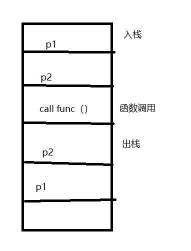 p1先入栈,p2再入栈,然后是可变参数入栈,由于可变参数的数目不可确定,那么就无法动态确定偏移,也就是不能求得可变参数,可变参数是根据确定参数然后地址偏移得到的,如果从右往左的方式,那么最后被入栈的就是最左边的那个确定参数,通过这个确定参数,然后偏移就能得到可变参数,而且,无论可变参数数目多少,都不会影响后面调用func函数,因为在最左边的最后一个参数入栈之后,下面一个地址就将进行函数调用,如果是按照从左往右的方式,最左边的确定参数一开始就背入栈了,那么无法动态确定可变参数的个数,如何通过偏移去调用func函数呢?这下你也应该明白,为什么C语言书上要告诉我们,可变参数前面,必须至少要有一个确定参数(当然,可变宏除外),而且,可变参数必须位于末尾,不能位于参数中间,位于参数中间,就会出现从左往右入栈的问题。