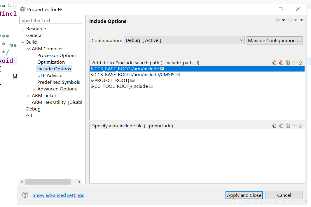 生成项目后,选择项目,点击属性,然后点击Build -> ARM Compiler -> Include Option