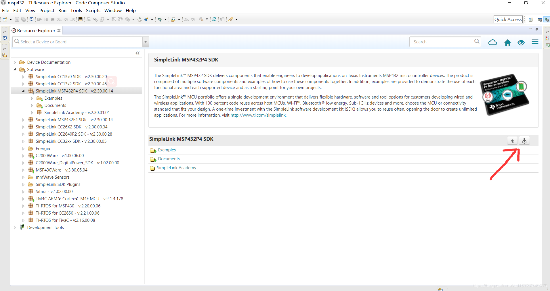 然后安装SimpleLink MSP432P4 SDK -v2.30.00.14