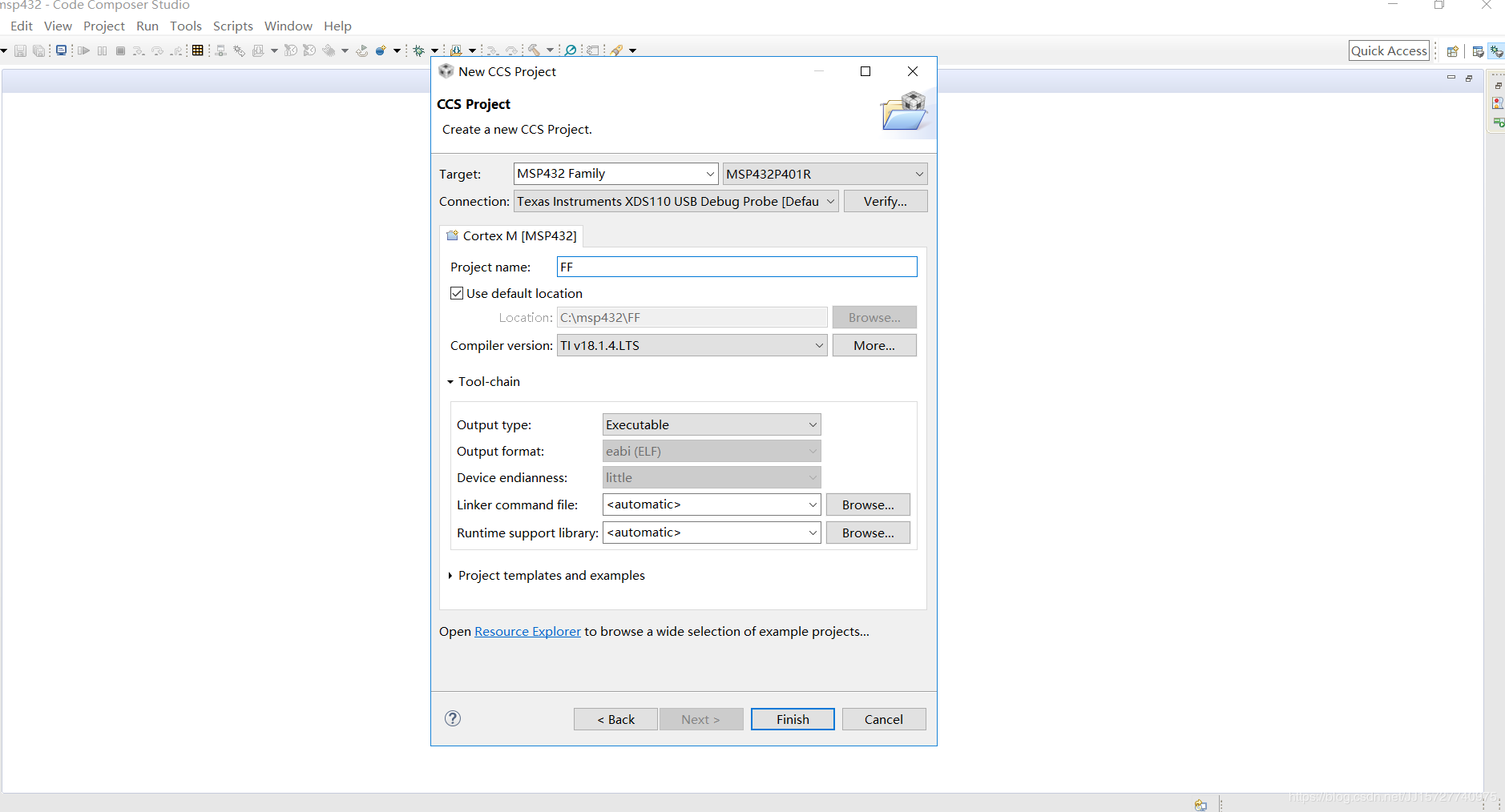 安装完成之后,新建CCS项目。