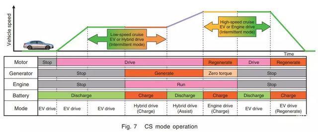 一种是电量保持模式(CS)。当电池组的荷电状态降到一定数值,引擎会介入输出,以使电池组剩余电量保持在一个特定值,换句话说,此时呈混动状态。