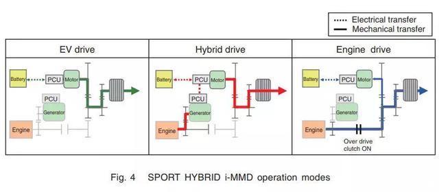 为了提高车辆的燃油经济性,有必要提高引擎热效率,同时通过提升引擎到车轮的能量转换效率,来提升系统总体运行效率。i-MMD就是通过切换不同驾驶模式来实现此目标。