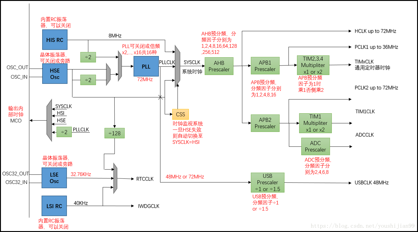 AHB(HCLK)时钟源自系统时钟(SYSCLK)