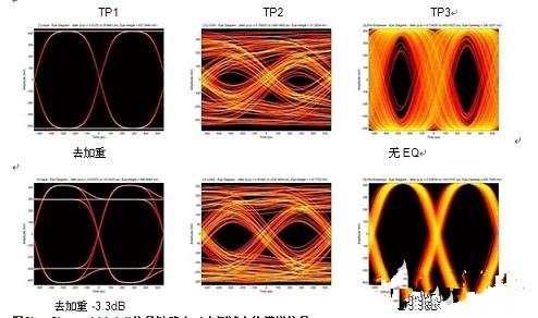 图3是数据从TP1到TP3的示波器截图,使用的是10米的CAT-6 STP线缆,运行数据负载为1.8Gbps。测试数据点位于解串器的输入端,不附加EQ。可以看到均衡器在接收数据时变化明显,当EQ设定为0dB,眼图完全封闭;而当EQ是6dB时,眼图完全打开。时钟和数据恢复(CDR)电路是恢复数据的关键,在解串器内CDR电路紧随EQ阶段后。CDR电路的设计目的在于恢复数据,避免字节错误,其眼图呈50%或0.5UI(典型)闭合态。