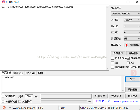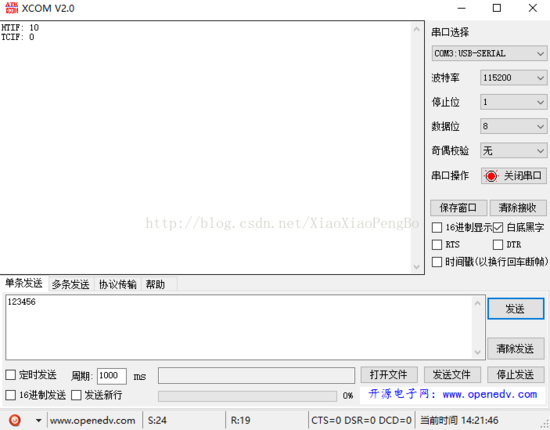 运行图,从串口发送数据,不光发送多少个,发送10个时候,会触发发送一半中断,发送到20个的时候,会触发发送完成中断