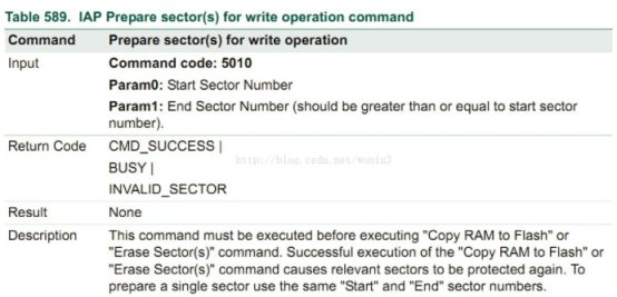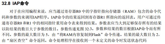 首先是flash的算法,lpc1768并没有寄存器来让我们操作flash,他内置了iap的flash算法,在技术手册的525页有如下说明