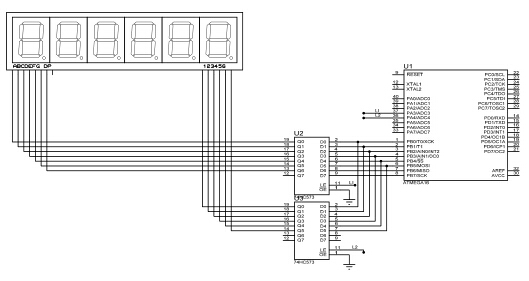 这两天总有人问数码管与74HC573的事,现在将数码管与74HC573正确连接图发给大家,并附上代码。代码是阿迪用其他软件编写的,我用ICCV7稍改了一下.发这个代码的另一个意义是他这个代码写的很精练,有很好的启发作用.