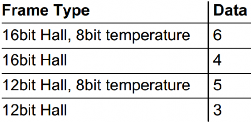 数据字段(DataNibble):表示从机采集到的数据,根据从机的设置,数据字段的数量可以是3到6个不等。其数据可包含霍尔值与温度值。