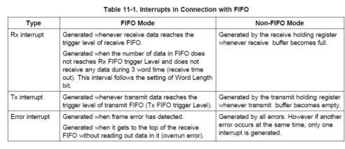 注意:DMA接收有FIFO模式下,当UART没有达到FIFO触发条件而且3个字时间没有接收到数据时,Rx中断会产生,用户应该检查FIFO的状态并读出其它数据。