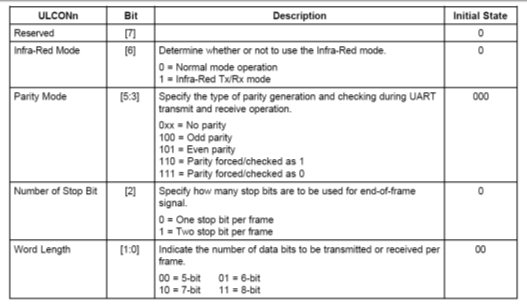 有3个UART线控制寄存器:ULCON0, ULCON1, and ULCON2