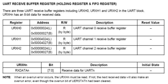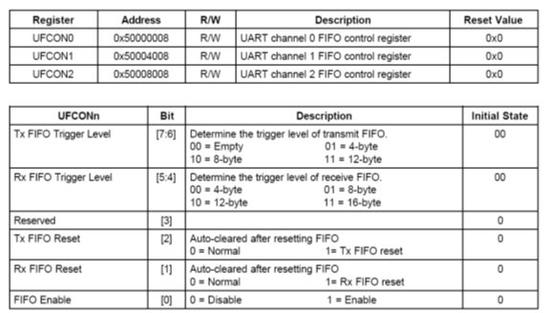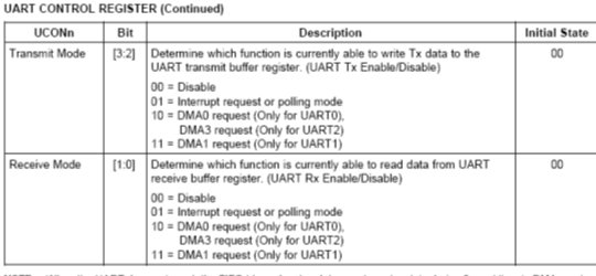 有3个UART控制寄存器:UCON0, UCON1, and UCON2
