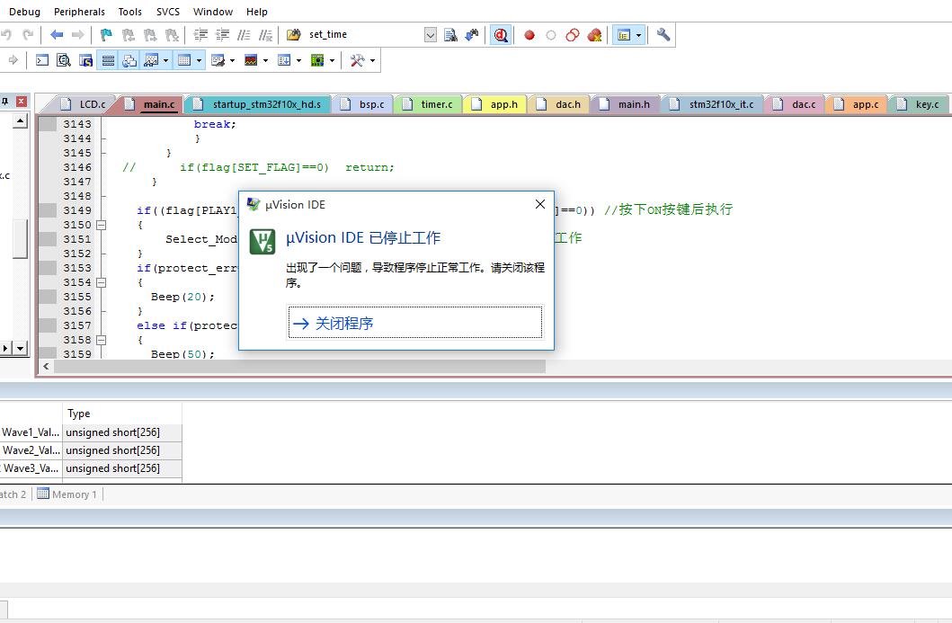 之前下载写好的程序并点击Debug按钮调试不会出现提示uVision IDE 已停止工作。后来复制了原工程文件夹,并重命名更长的文件夹名后可以下载程序,但Debug就会出错退出软件。网上有人说工程文件夹路径不能包含太多字符。我的工程文件夹路径包含的汉字和字符长度已超过170个。因此调试出错。把路径包含字符长度减少到170以下再次编译就可以正常调试了。