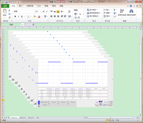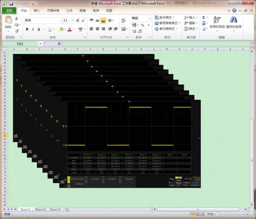 如图 3所示,Wave_Analyze软件点击一次设备持续截图到剪贴板后,在Microsoft Excel里面连续按10次CTRL+V粘贴,可以得到10张不同的示波器截图。