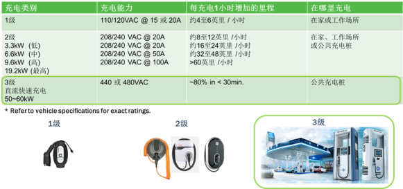 图1:电动汽车充电级和里程
