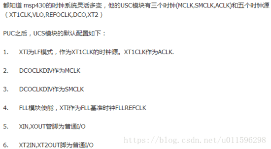 从32转到MSP430最让我头大的就是它的时钟配置了,参考了一些网上的资料,看了几天终于大概了解了一点。