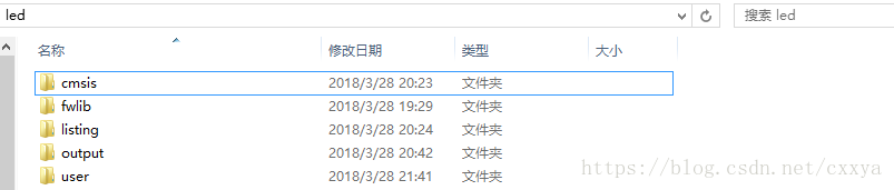 新建文件夹并命名,在此文件夹下建立user,fwlib,cmsis,output,listing等子文件夹。