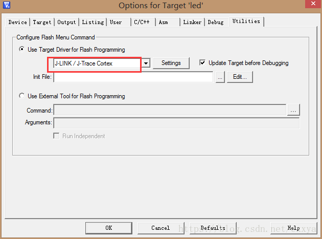 点击按钮,将Debug和Utilities选项卡下的设置修改如下。