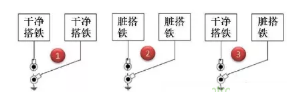 第 1 种方式干净搭铁回路之间的搭铁端子搭接是允许的;第 2 种脏搭铁回路之间的搭铁端子搭接,也是完全可以接受的;对于第 3 种脏搭铁与干净搭铁端子搭接,通常是可以接受的,但需要得到相关专业的评审通过。