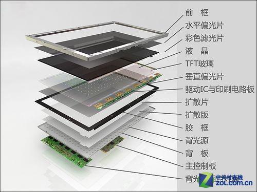 液晶显示器的液晶面板内部构造,同时也会为大家再次展示 LED 背光源的样貌。液晶面板通常由液晶分子层、滤光膜和背光源等几大部分组成,下面我们就将三者分开。