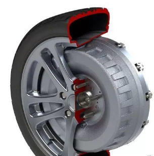 传统的驱动电机安装在轮毂外面,依靠减速器减速增扭后驱动车轮,在物理角度来看,传统驱动电机其实很类似燃油车的发动机+变速箱,只不过是把这两个东西换成电机而已,因此这也就是当前阻碍纯电动车的机械效率进一步提升的主要原因。
