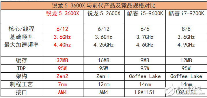 而和对位的产品英特尔酷睿i5-9600K相比,锐龙5 3600X则支持超线程技术,这也使锐龙5 3600X在某些应用场景下拥有跨级对战的资本。