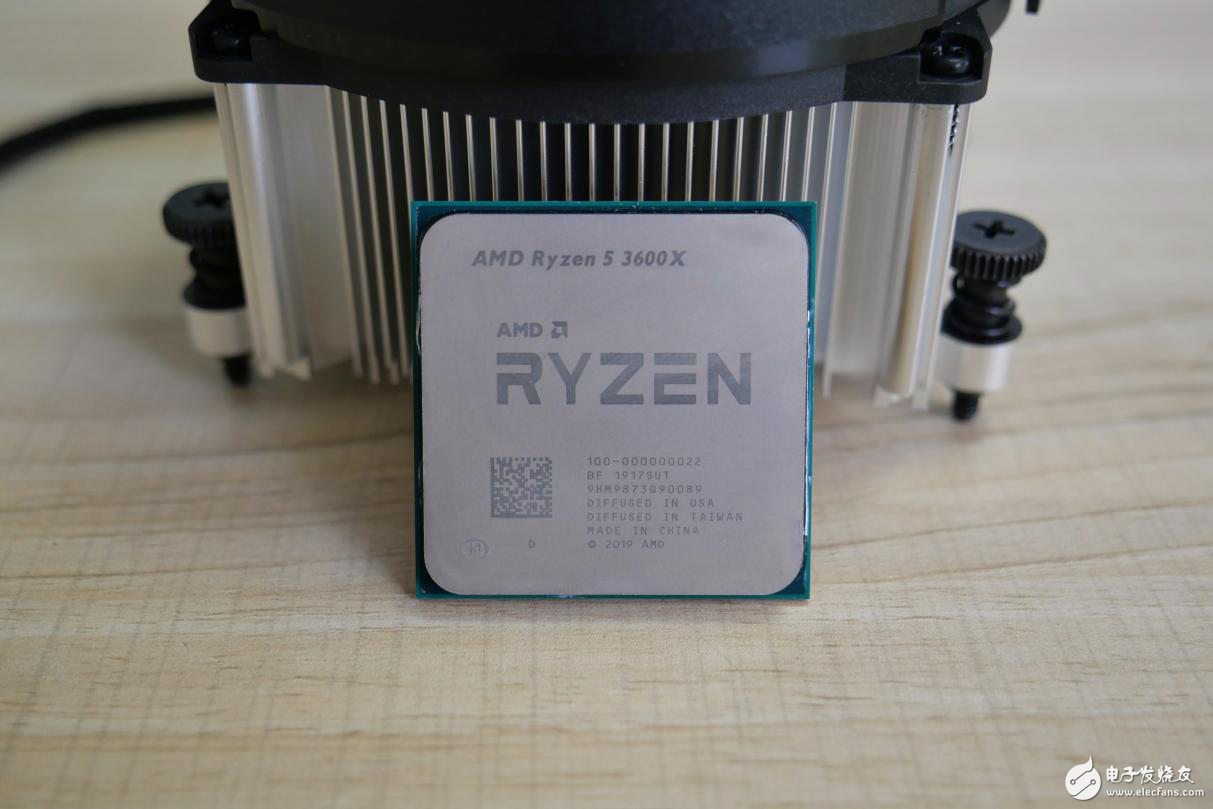 而顶盖上的“AMD Ryzen 3600X”则凸显了这颗处理器的身份,底部有几排小字,其中“DIFFUSED IN USA”表明了核心里的12nm I/0控制器由美国GlobalFoundries生产、“DIFFUSED IN TAIWAN”表明了7nm“Zen 2”CPU芯片由中国台湾的台积电代工、“MADE IN CHINA”则是表明了这两个芯片在中国大陆进行封装。