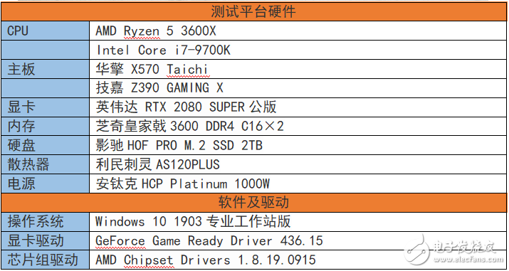 两套测试平台一览,AMD锐龙5 3600X平台: