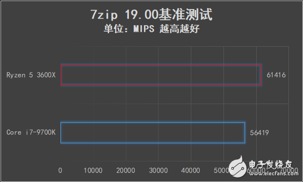 7-Zip是一款完全免费的压缩解压缩软件,同其他压缩软件相比它的压缩速度更快压缩率更好,对超线程的支持非常好,锐龙5 3600X的基准测试得分高达61416MIPS,比价格更高的酷睿i7-9700K高了将近5000MIPS。
