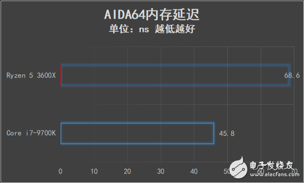 内存延迟方面,锐龙5 3600X为68.6ns,和二代锐龙处理器相当。但鉴于锐龙5 3600X内置了32MB超大缓存作为弥补,所以内存延迟对游戏的影响有所降低。