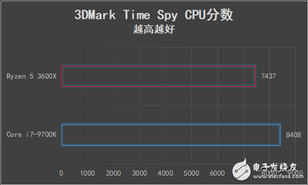 到了DX12的TImeSpy场景,酷睿i7-9700K的物理分数反超了锐龙5 3600X。