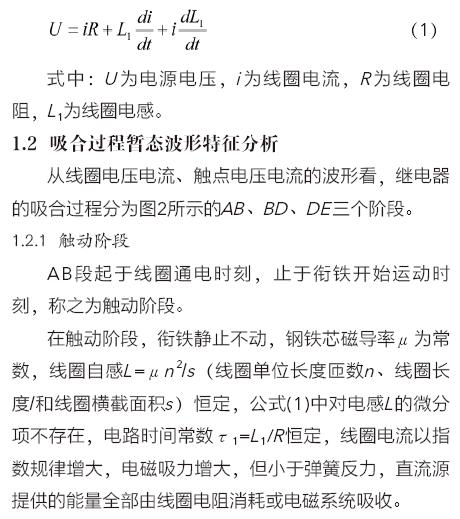 1 直流电磁继电器吸合过程暂态分析