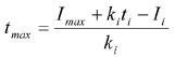 根据上文中求时间常数的方法,设在ti时刻的斜率直线与线圈电流最大值交点为(tmax,Imax),由于这个交点同样在斜率直线上,故: