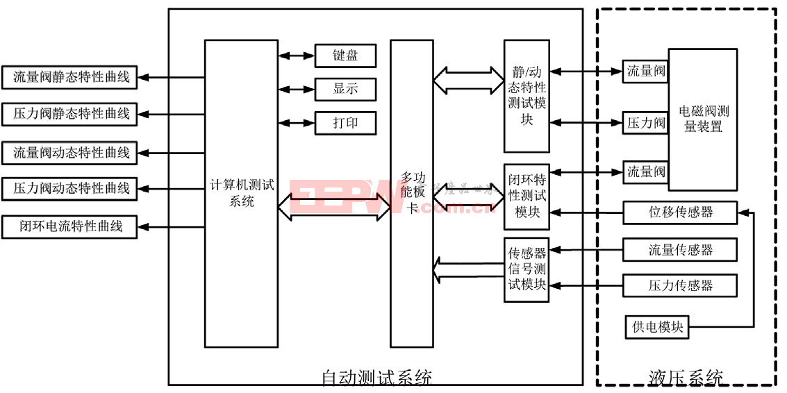 分析结果以曲线形式显示输出,并根据需要实现试验数据的 保存,打印及报表输出。图1是测试系统功能结构图。