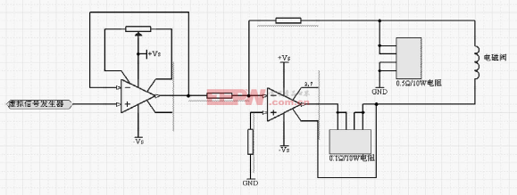 恒流源模块是静/动态测试的关键, 本文选取了体积 小、效率高,电流调节范围宽的集成电路恒流源为电磁阀提 供恒定电流,其主要元件是功率运算放大器,功率运算放大 器是集成运算放大器的一种,一般的集成运放输出电流较 小,