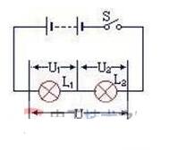 在串联电路中,电路的总电压等于各个用电器两端电压之和.U=U1+U2
